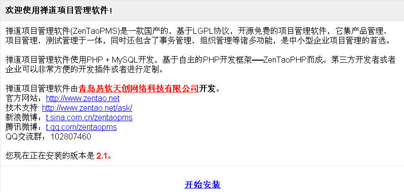 2.4 已经完成代码的部署和服务的初始化, 点击进入初始化页面,完成对禅道的安装。