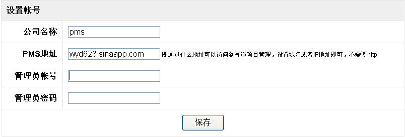 配置保存后,点击下一步到设置账号。填入公司名称、管理员账号和密码。点击保存。