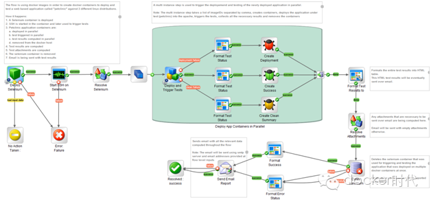 该演示内容包含两套工作流程以及多套子流程。随演示附带的指南文件当中提供针对各流程的具体说明。在本篇文章中,我们将近距离观察其中的主流程:以并发方式部署Pet Clinic并触发测试。该流程的设计目的在于展示Web应用程序当中并发自动化部署及自动化测试所带来的便捷性优势,而这也能被轻松引入大规模 DevOps体系当中。该流程的实现需求包括: