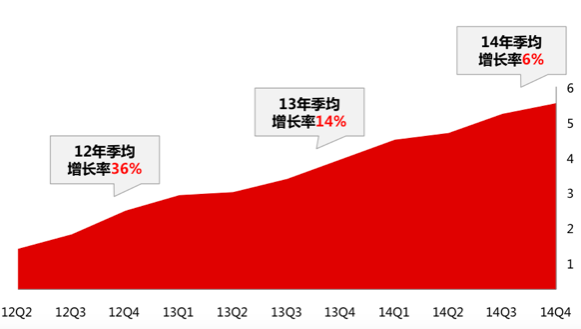 有数据表明,智能手机已经进入到滞涨的阶段。下图来自百度的一份报告。从 36% 到 14% 到6%,依然在增长,但速度明显在放慢。